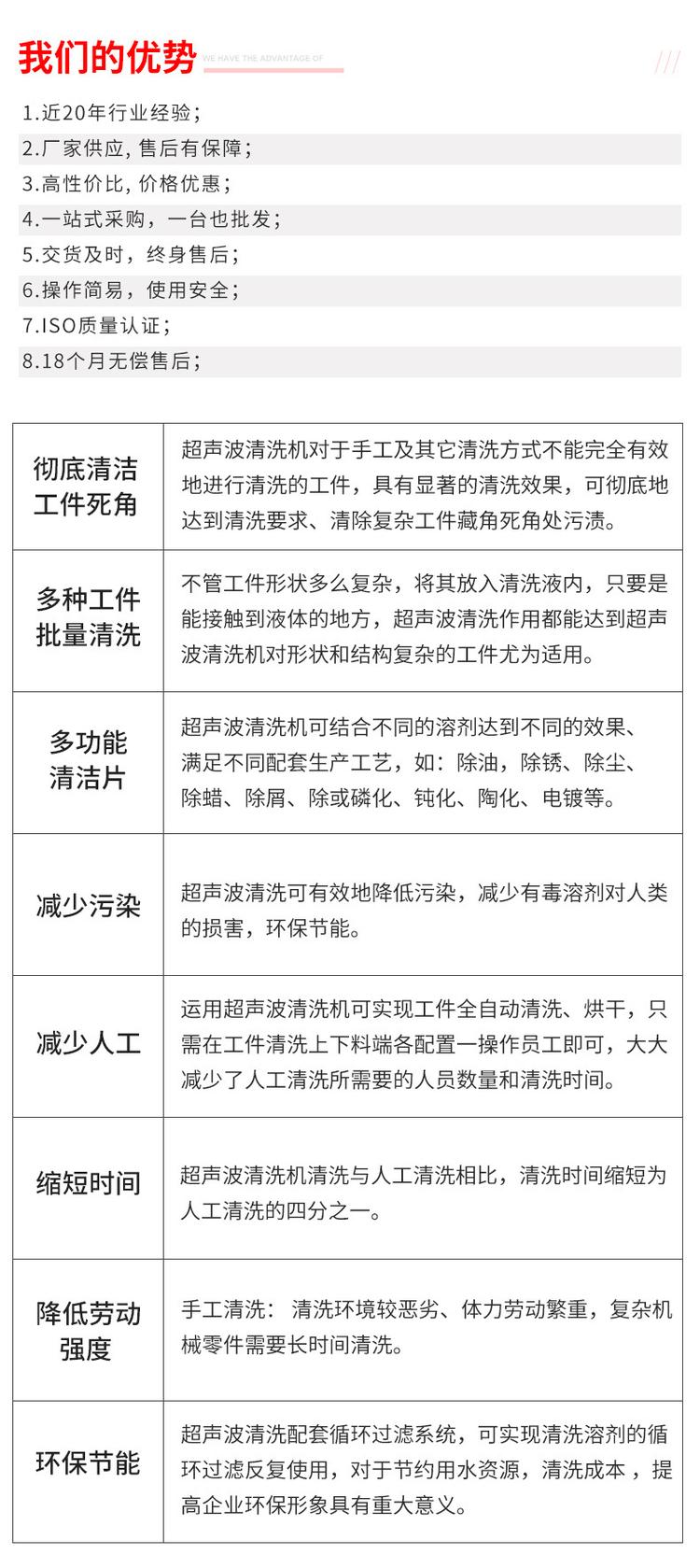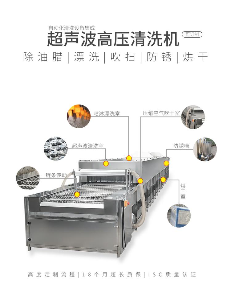 鋁合金壓鑄件噴淋清洗機(jī)是一臺履帶式超聲波清洗烘干線,采用特制網(wǎng)鏈傳動(dòng)輸送工件,具有超聲波粗洗、超聲波精洗、鼓泡過水、切水、烘干、等功能的新穎連續(xù)式清洗烘干設(shè)備。由人工將工件放在特制的傳動(dòng)網(wǎng)鏈上,工作時(shí),清洗工件置于輸送帶上,依次通過清洗室、清洗室、漂洗室、切水室、烘干室完成清洗、漂洗、過水、吹水、烘干等流程后出料,超聲波槽回液經(jīng)過濾處理循環(huán)使用,該機(jī)具有工位多,功能全,結(jié)構(gòu)合理,操作方便,清洗效果好的優(yōu)點(diǎn),這對于流水線零件的清洗,改善勞動(dòng)環(huán)境,節(jié)省勞動(dòng)力,提高清洗和吹干質(zhì)量,具有重要的意義,適用范圍:如LED燈杯、燈座、燈罩、燈殼、鋁殼、沖壓鋁件,電機(jī)外殼、散熱器、五金配件等等。