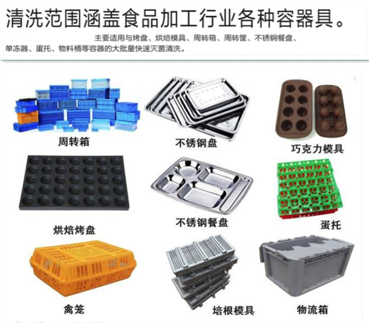 工作原理主要有:高壓高溫水清洗,主要是通過水泵將水箱中經(jīng)過加熱的水高速抽到機器噴淋管中,經(jīng)由裝在噴淋管上的噴嘴噴出,形成高壓水流噴淋在周轉(zhuǎn)箱上,經(jīng)由高壓高溫的水將周轉(zhuǎn)箱上的臟污沖離周轉(zhuǎn)箱表面,并且清洗過程中可以加入各種清潔溶劑,能更好的提高清洗效果。